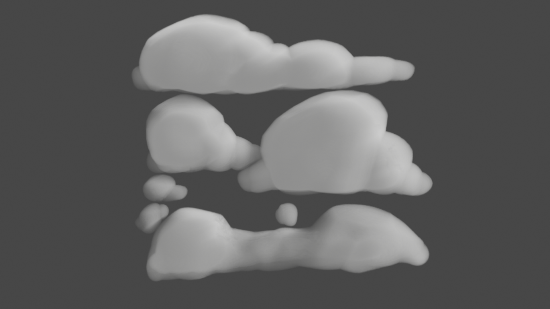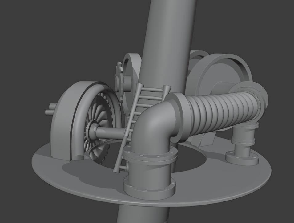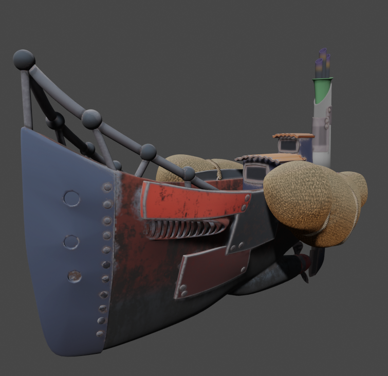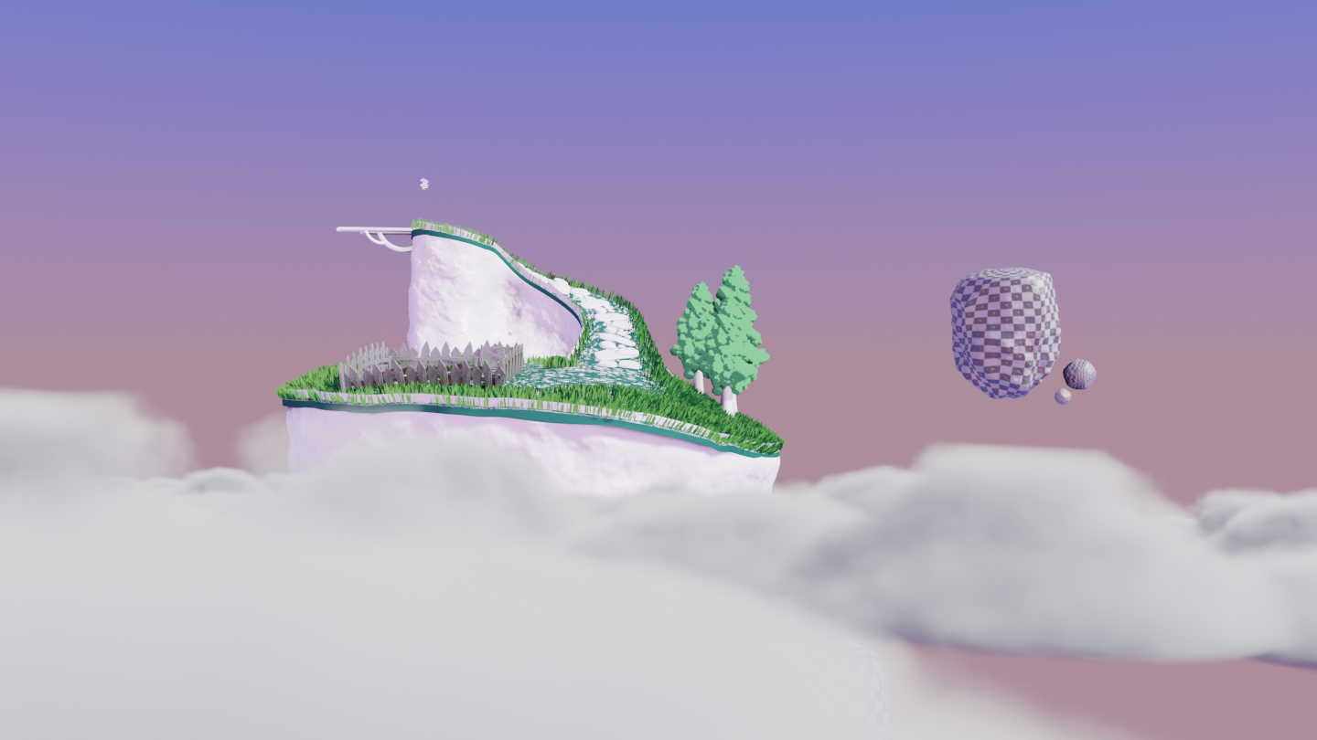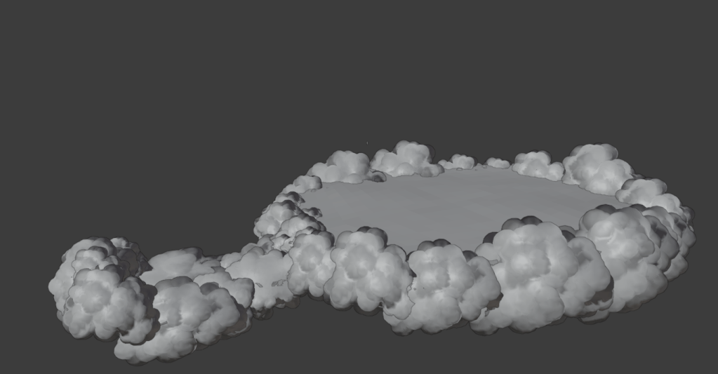 After all the models were finished and UV’s it was time to bring some colour in by texturing them. Working in blender with eevee (a real-time render engine) and texturing in substance painter for the first time was quite a learning curve and there was more than a few hours spent googling solutions. Texturing however offered a really satisfying outcome that surprised me. It was amazing to see the designs and ideas realised within the look of the film. This is also where I began honing in the volume materials that would form the clouds a big part of the film.
