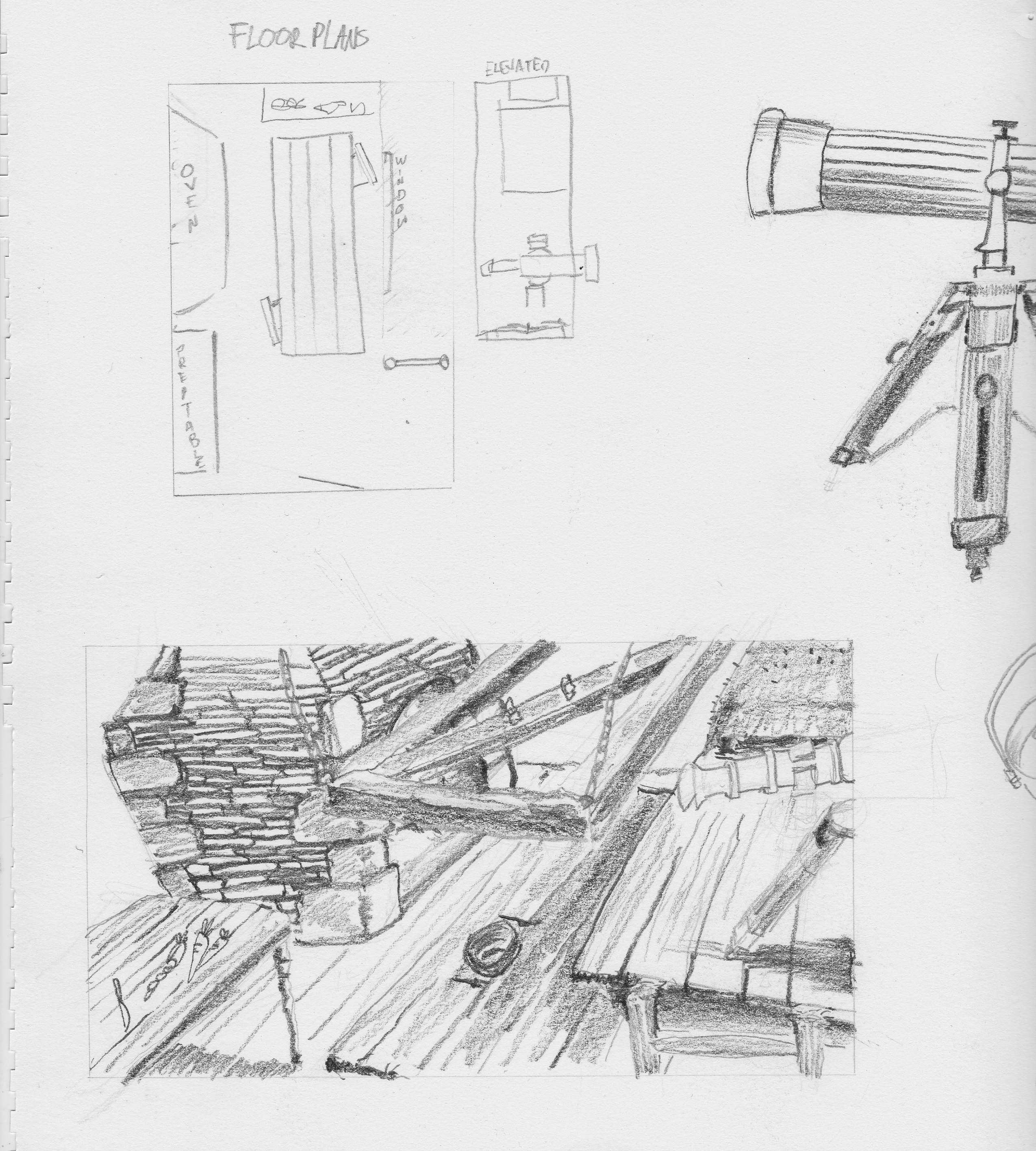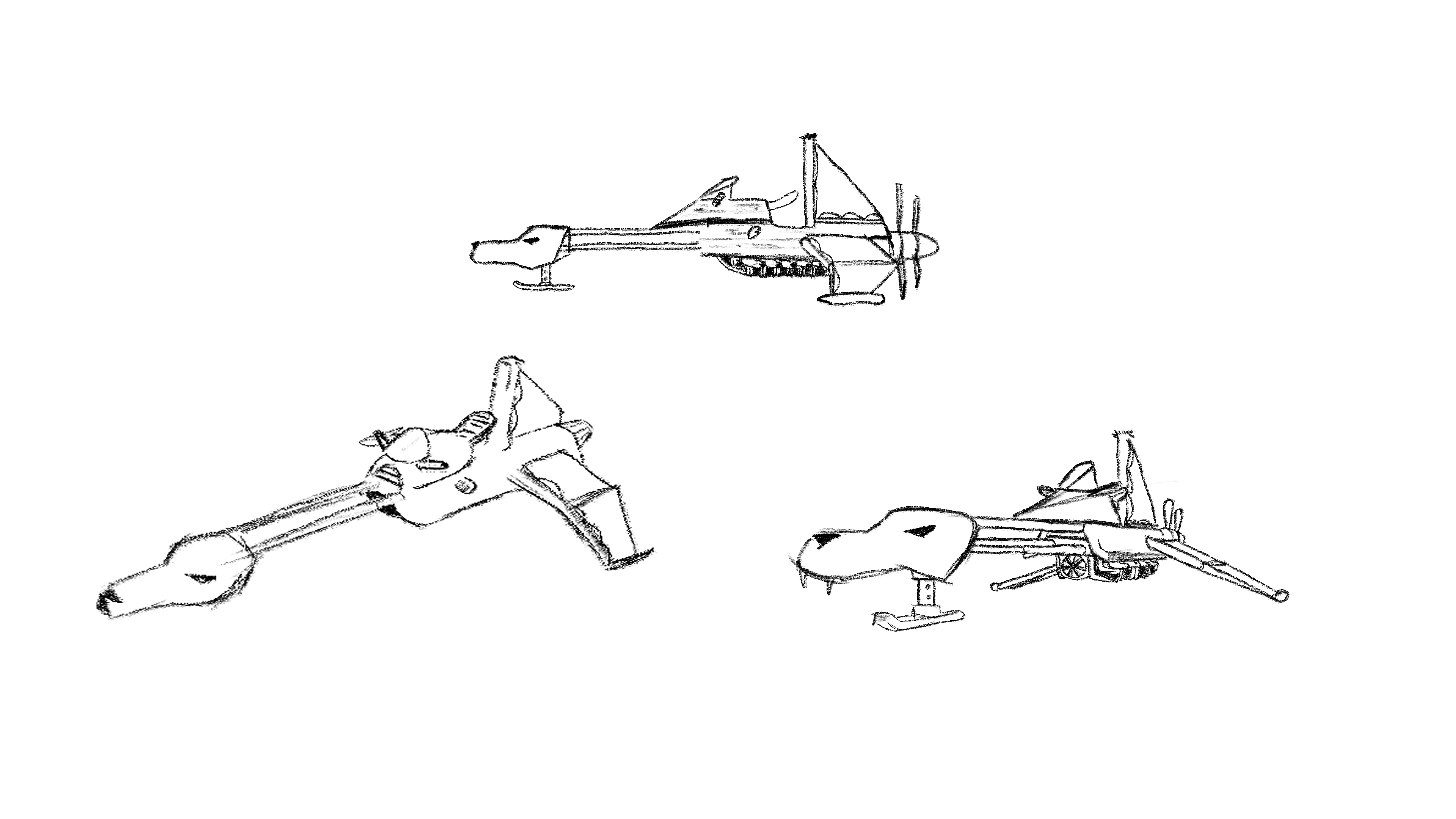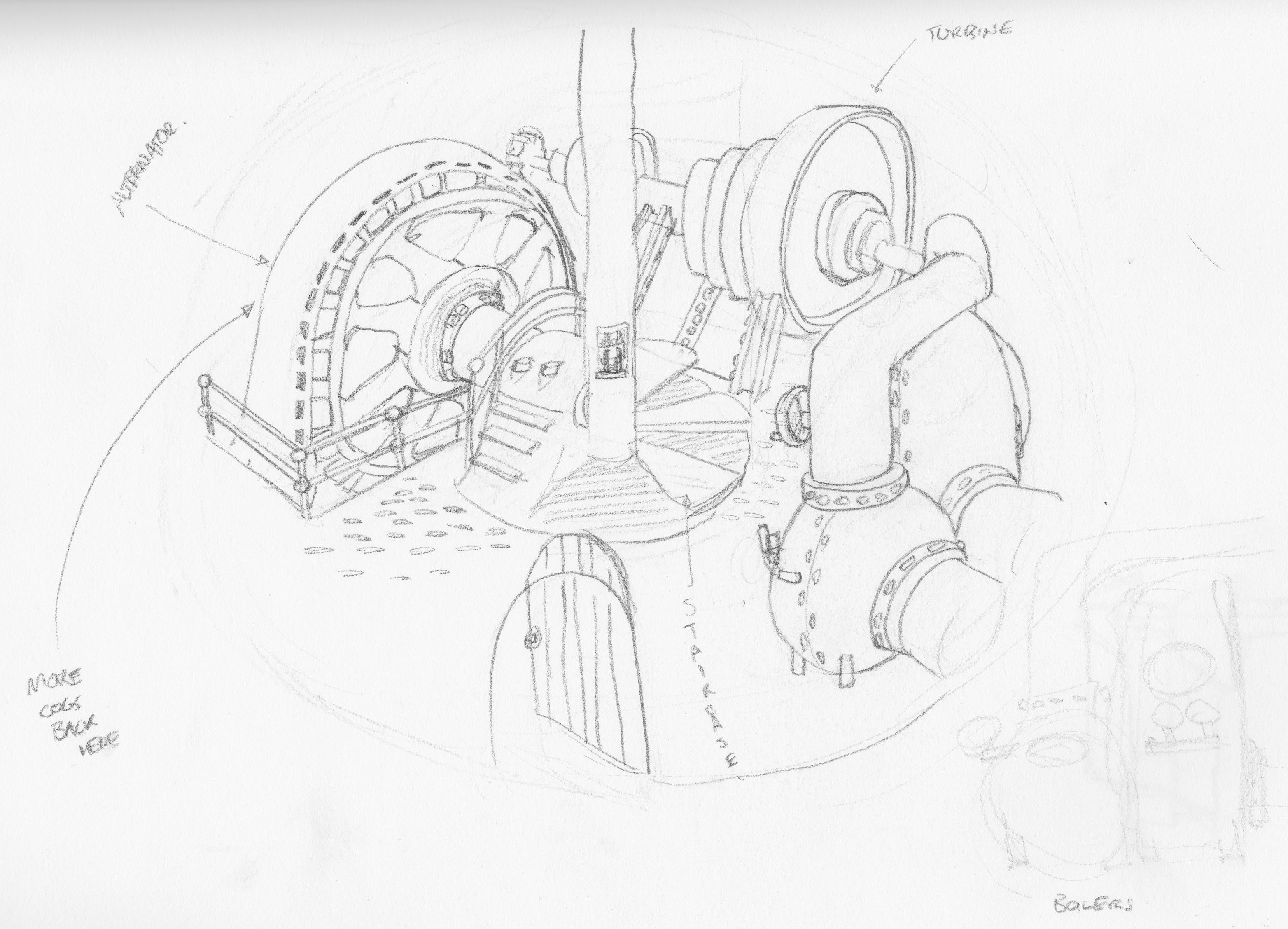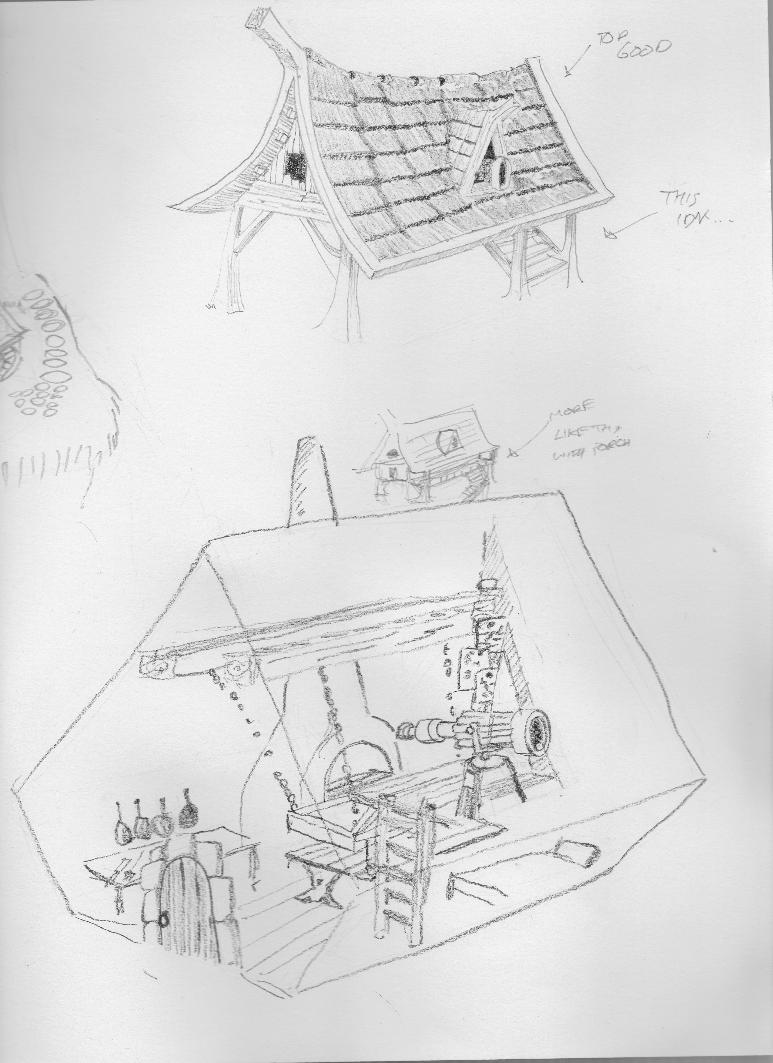 We would need rough models and rigs that we can pose. So I did some more drawings to help layout some of the bigger elements. Then we got into modelling.