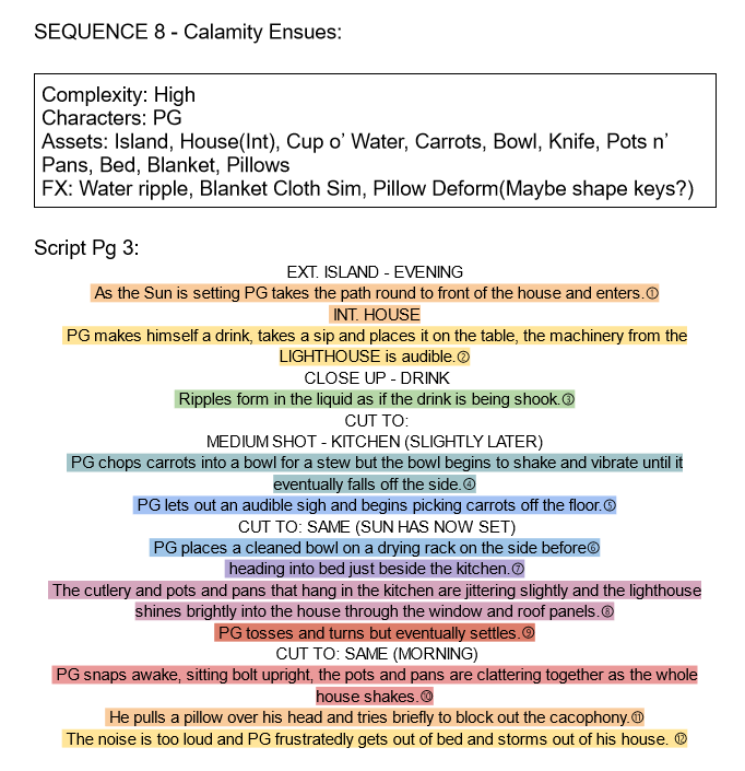 It’s October and I’ve got a finished script with sequences, shot counts and complexity breakdowns. Here’s what sequence 8 looks like:
