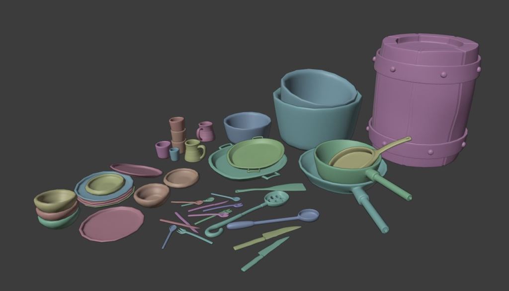 After setting that out it was back to modelling, there was a lot of stuff to make and make look good. For me personally it took about anywhere from half a day to three or four to get a model done depending on the complexity. We also agreed to UV the model after it was finished before moving onto the next. This was useful because the topology is fresh in your mind and it’s much quicker to figure out where to put your cuts when unwrapping the UV. This is a major part of the production and it took us about two months to finish, here are some of the results.