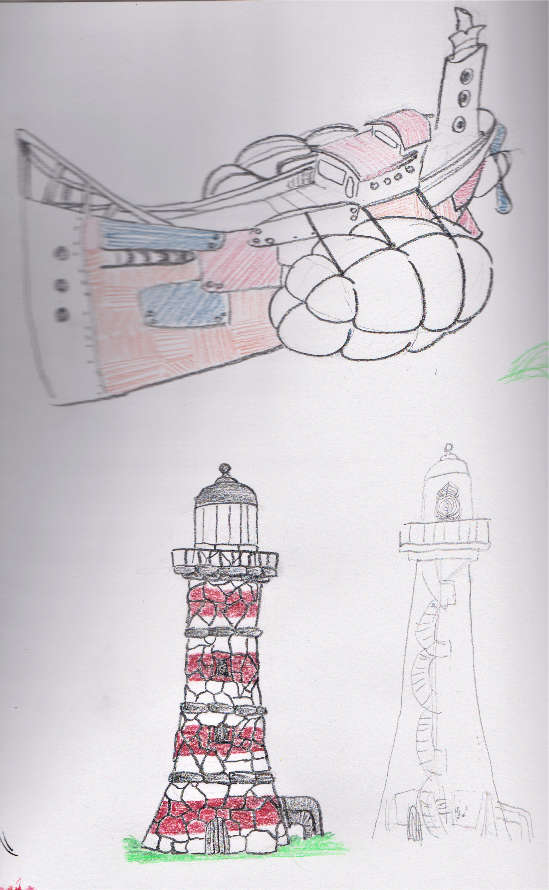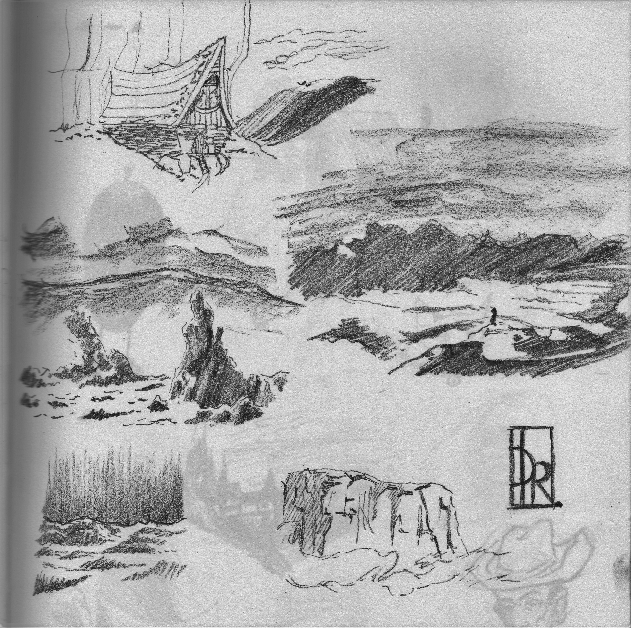 Here you can see where I started I had an idea of character who lives amongst the clouds at this point either on top of a very tall mountain or on a floating rock. Then I came home and I drew some more from photos and my imagination.
