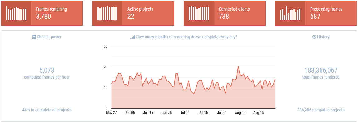 After I went through made sure all my settings were right I uploaded a zip of the blender animation file and the linked props and rigs to SheepIt.